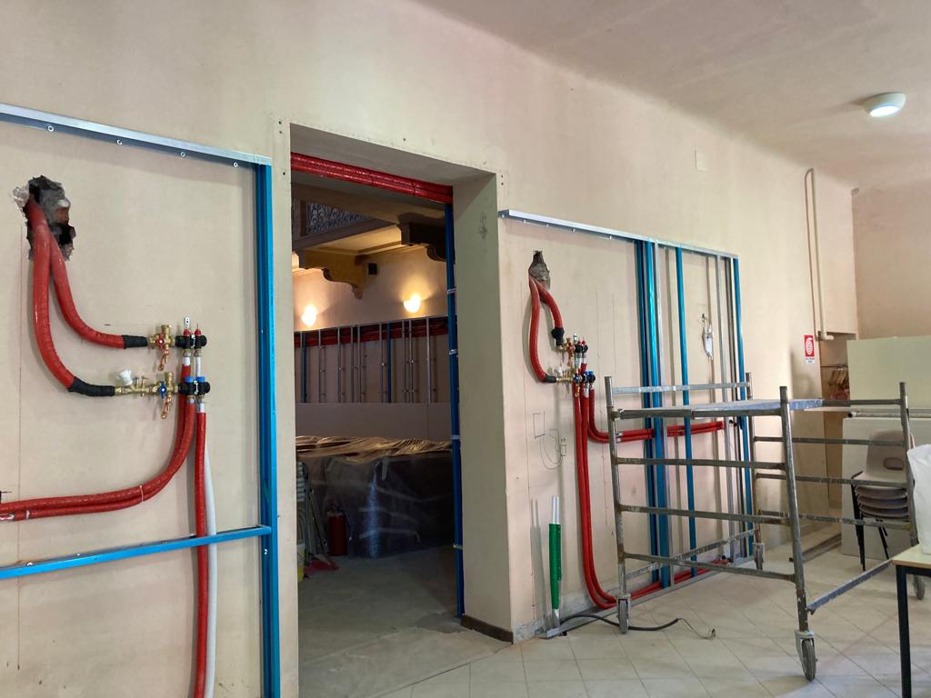Proseguono a pieno ritmo i lavori al Teatro Olimpia di Vecchiano a cura dell’ufficio tecnico comunale. “Ricordiamo che si tratta di un intervento da 310mila euro, realizzato con Fondi Pnrr ottenuti dal Comune di Vecchiano”, afferma il Sindaco Massimiliano Angori. “Stiamo eseguendo lavorazioni tra cui la realizzazione del cappotto termico. Vengono effettuate inoltre piccole modifiche alla ripartizione dei pannelli isolanti acustici e vengono effettuate delle riprese di impermeabilizzazione, dove necessario. Sarà messa a punto la realizzazione di controparete isolante interna alla parete della facciata principale, che migliora il microclima della hall di ingresso al teatro e garantisce un miglior grado di efficientamento termico dell’involucro, anche a compensazione della riduzione delle superfici a cappotto.