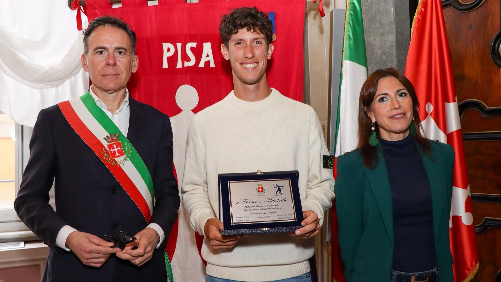 Si è svolta la mattina di lunedì 16 febbraio in sala Baleari a Palazzo Gambacorti la cerimonia di premiazione del tennista pisano Francesco Maestrelli, primo atleta di Pisa a partecipare agli Australian Open.