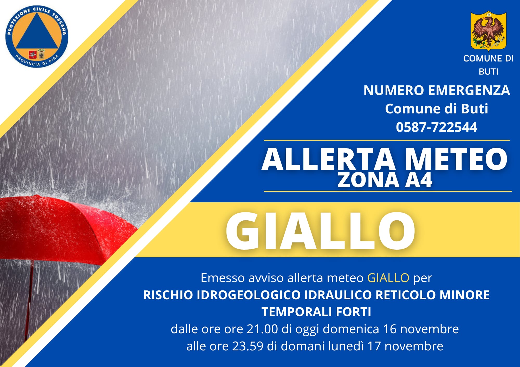 Per questo la Sala Operativa della protezione civile regionale estende dalle 21 di oggi (domenica 16 novembre) l’allerta già in vigore con codice giallo a quasi tutto il territorio della regione, incluse le isole dell’Arcipelago.