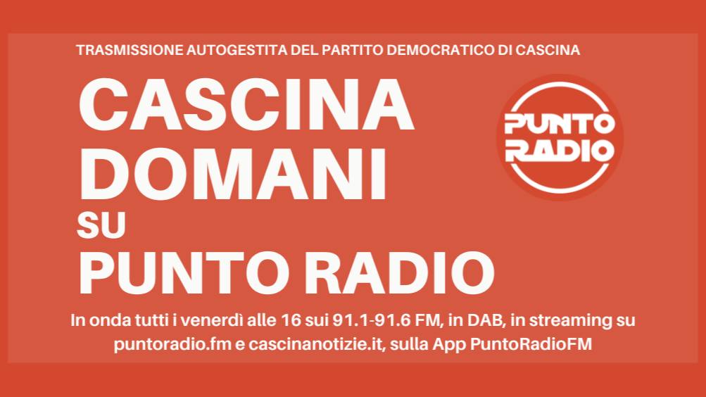 Saranno questi i temi della prossima puntata di Cascina Domani, la trasmissione autogestita dal Partito Democratico di Cascina, in onda venerdì 24 ottobre, alle ore 16, su Punto Radio. Saranno ospiti del giornalista parlamentare Michele Del Ben, l’on. Rosy Bindi, già ministro della Salute, il prof. Paolo Malacarne, gia primario di anestesia all’Ospedale di Cisanello e Giulia Guainai, assessora al Comune di Cascina. Per intervenire basta mandare le proprie domande e osservazioni al numero di Whatsapp: 351412270
