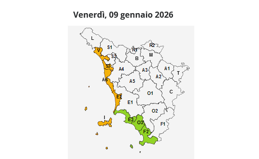 A partire dal pomeriggio di venerdì 9 gennaio, possibilità di locali temporali sulla Toscana centro-settentrionale, dalla Garfagnana fino al Valdarno superiore, accompagnati fin dalle prime ore della giornata da forti raffiche di venti di libeccio-ponente sulla costa centro-settentrionale e sull'Elba. Il mare risulterà da agitato a molto agitato a nord dell'Elba, molto mosso altrove.
